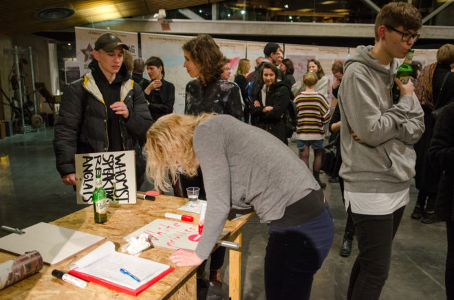 Gedurende de expositieperiode was ook de video booth open voor publiek dat hun zelfgemaakte protest bord kon laten zien.